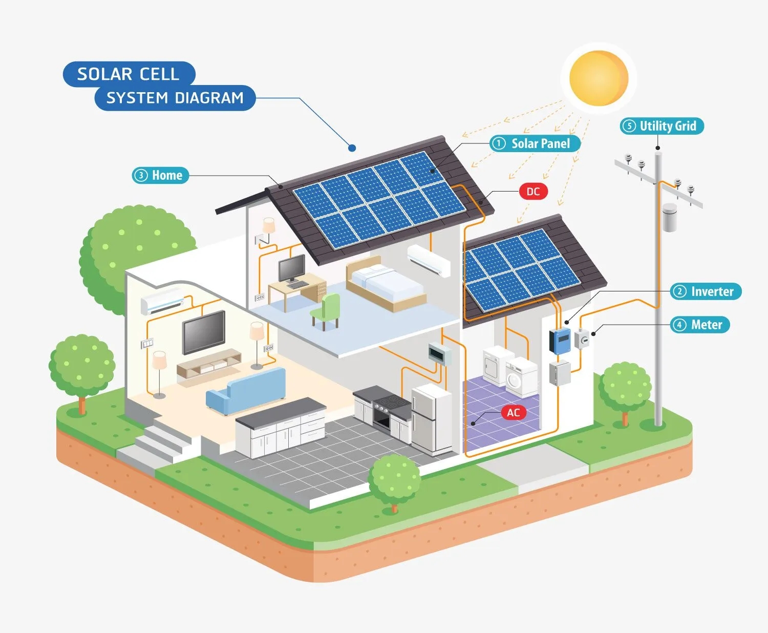 An on-grid solar system consists of solar panels, inverters, a power conditioning unit, and grid connection equipment. They range from small residential and commercial rooftop systems to large utility-scale solar power stations. When conditions are right, the grid-connected PV system supplies the excess power, beyond consumption by the connected load, to the utility grid.